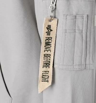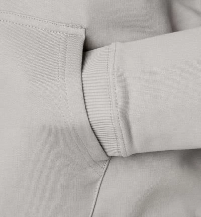 Vorderteil: Kängurutasche/n, Reißverschlusstasche/n an linken Oberärmel mit abnehmbarer Logo-Fahne, Rippenstrickbündchen am Ärmelabschluss, Rippenstrickbündchen am Saum