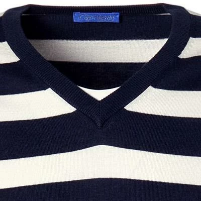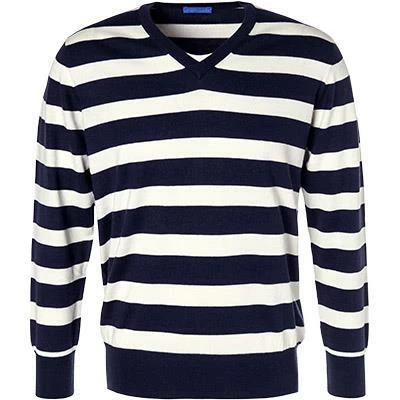 Die Besonderheit dieses Pullovers liegt in der edlen Seide-Baumwoll Qualität. Eine gerade Passform und das klassische Design macht dieses Modell zum Allrounder für stilvolle Casual-Outfits. Ein exklusiver Pullover im maritimen Blockstreifen-Look.
