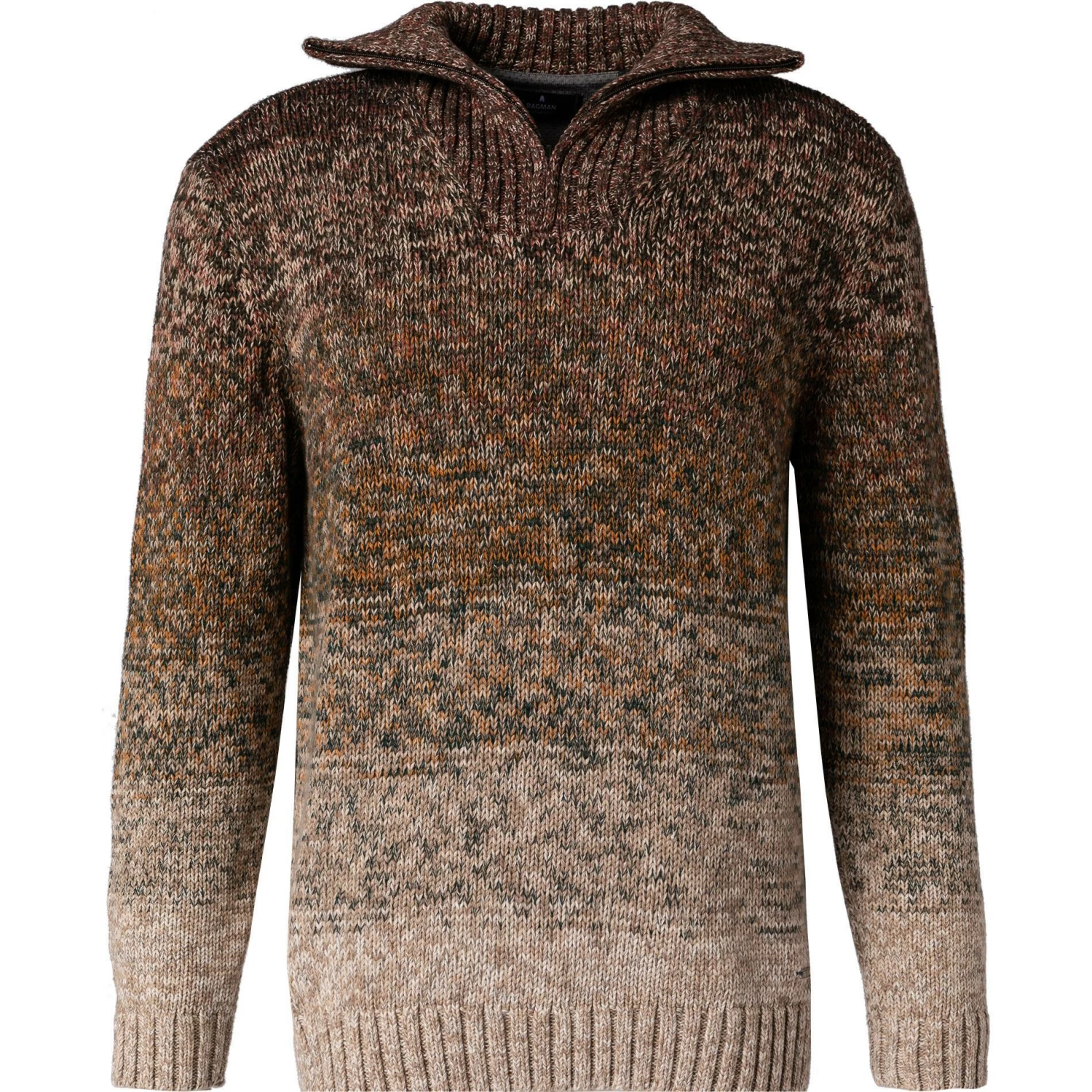 Vorderteil: Stehkragen mit Reißverschluss, Gerader Saumabschluss, Armausschnitt gemindert, Halsausschnitt gemindert, Rippenstrick am Kragen, Rippenstrickbündchen am Ärmelabschluss, Rippenstrickbündchen am Saum